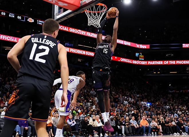 本场比赛中,虽然太阳输掉了比赛,但是球队的先发中锋马克-威廉姆斯(Mark Williams)的表现其实还是不错的。威廉姆斯全场出场28分53秒,投篮10中9,罚球3中2,得到了20分6篮板1助攻3盖帽的数据,其中还包括了3个前场篮板,还有1次失误和2次犯规,正负值更是达到了全场最高的+14。威廉姆斯的出场时间并不多,但是他还是展现出了相当不错的篮下得分能力和终结能力,他也是抓住了有限的机会得到了不少分数。威廉姆斯在防守端也算是比较努力了,他也是能够起到一定的防守效果的。至少在本场比赛中,威廉姆斯在和德安德烈-艾顿(DeAndre Ayton)的较量中没有出现明显的劣势,两人都能够在进攻端发挥出自己的威胁,都让对方显得有些难受。能够在与艾顿的较量中保持这样的水准,也算是不错的表现了。只是球队不少球员的表现不太理想,他的努力也是没有办法收到回报。