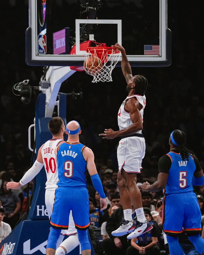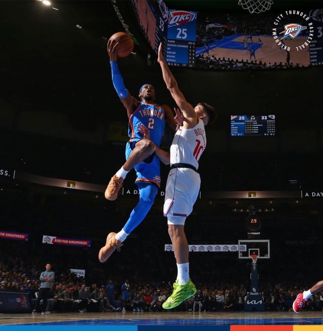 亚历山大32+7+6雷霆送快船5连败,哈登缺席莱纳德22+8+6