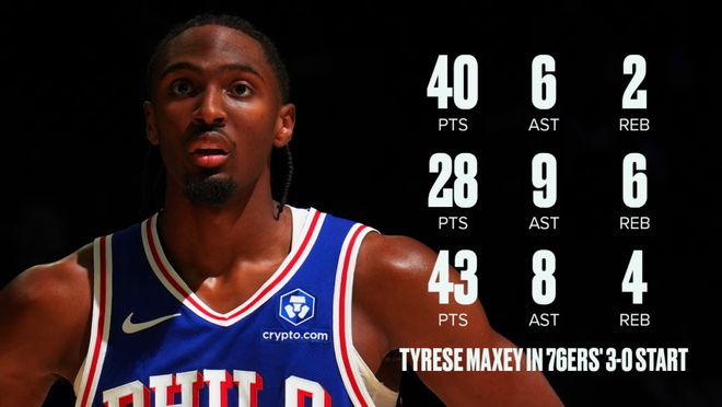 数据肯定有些定制,但这赛季开局的马克西,不夸张地说,与文班亚马、字母哥一样是MVP级别,他的得分目前排在联盟第二,仅次东契奇的46分(只打了2场),助攻则排在联盟第七,比哈登、坎宁安等人还要多。