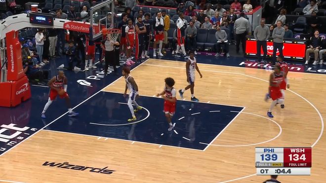 但,这最后的不到3分钟时间,76人愣是轰出一波10-0将比赛拖进加时,随后加时赛,76人又在一上来就被打了5-0的情况下,还了奇才一波13-3,逆转收下胜利。